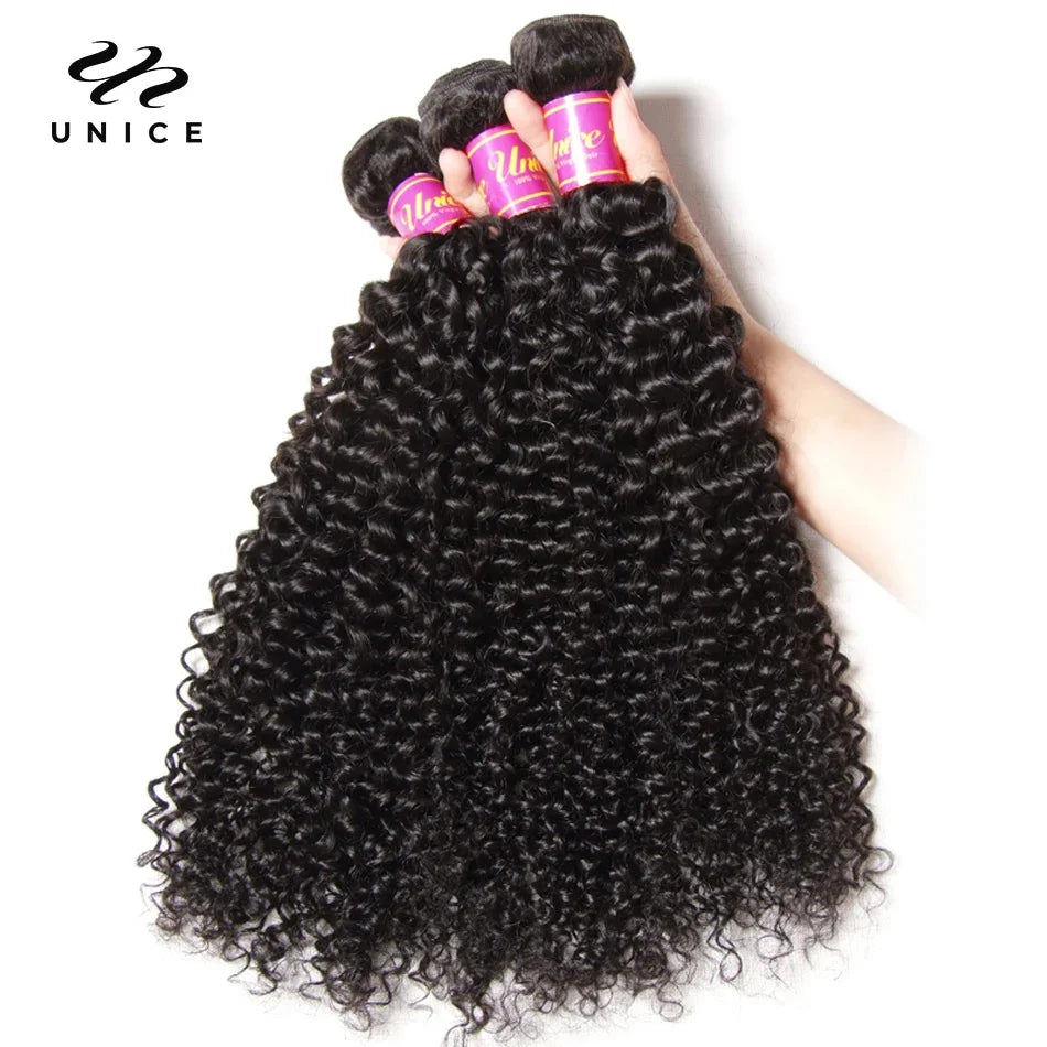 UNice Hair Virgin Human Hair Bundles Indian Curly Hair 3 Bundles 100% Human Hair Extension Natural Color Hair Weaves 8-26Inch